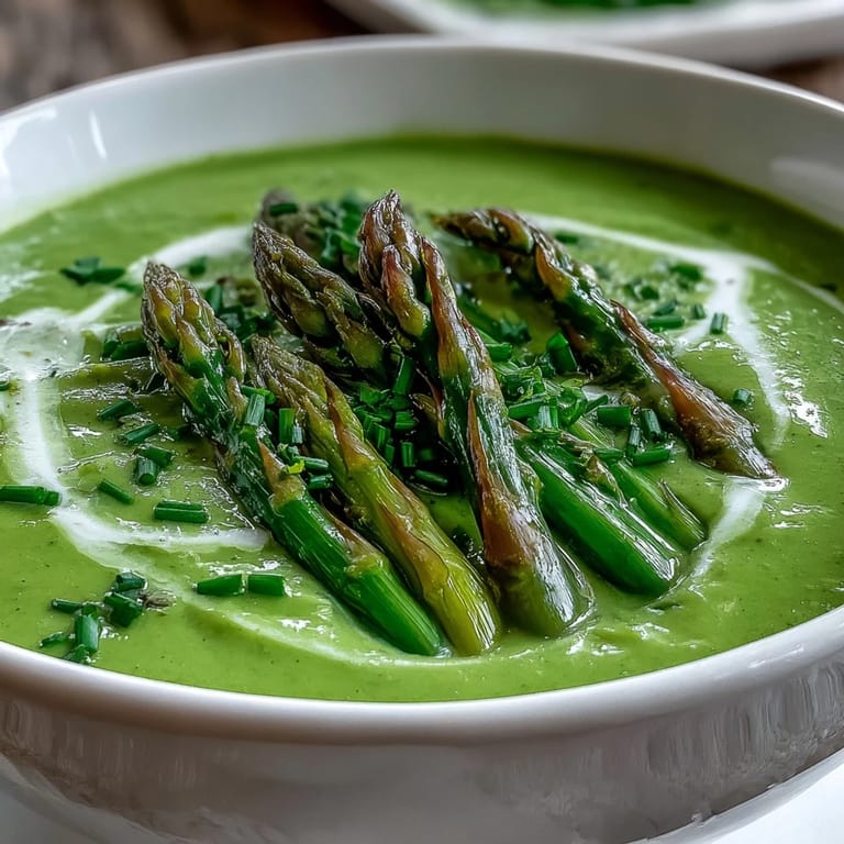 Save to Pinterest Experience the essence of spring with this light and elegant Asparagus Soup. This dish perfectly showcases the delicate flavor of fresh green asparagus, enhanced with a touch of cream to create a silky, velvety texture that is both sophisticated and comforting.