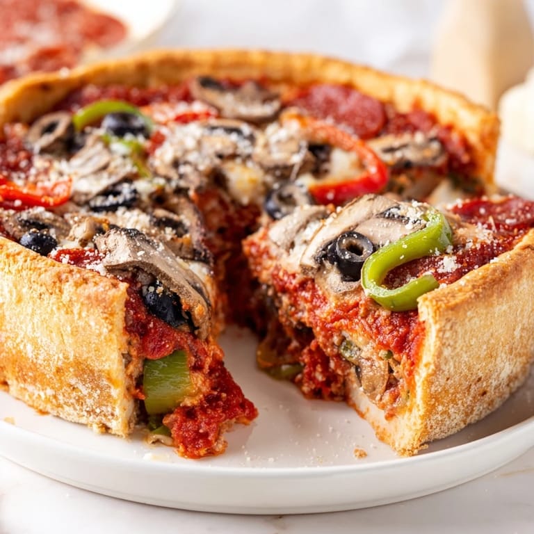 Cornmeal adds authentic Chicago texture and a subtle sweetness to the crust. It creates a slightly grainy, crunchy exterior while keeping the interior tender. The cornmeal also helps the dough develop that signature golden color and provides extra structure to support the heavy layers of cheese and toppings without collapsing during baking.