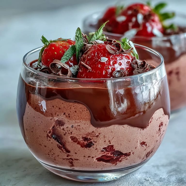 Save to Pinterest My neighbor showed up one afternoon with a basket of strawberries that were almost too ripe to ignore. I had just bought good chocolate the day before, and somewhere between her chatting at my kitchen counter and me rummaging through the fridge, this dessert was born. It wasn't planned, wasn't fancy, just two ingredients that belonged together and a little cream to make them float. The mousse turned out so light I actually laughed when I tasted it, and the ganache on top made it feel like I'd done something impressive without really trying.
