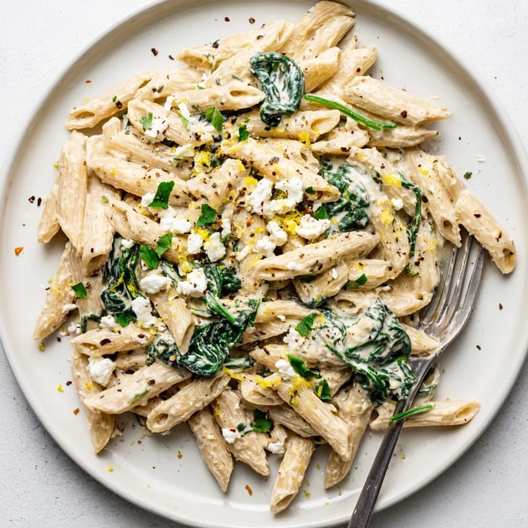 Penne, fusilli, and spaghetti are excellent choices because their shapes capture the creamy sauce well. Short pasta with ridges or tubes holds onto bits of feta and spinach, while long strands like spaghetti or linguine create elegant, twirlable bites. Choose what you enjoy most.
