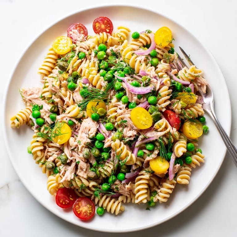 Save to Pinterest My neighbor brought this to a block party last summer, and I literally hovered around the bowl until she wrote the recipe down for me on a napkin. Something about the bright lemon cutting through the rich tuna just works perfectly on those humid August afternoons when turning on the oven feels like a personal offense.